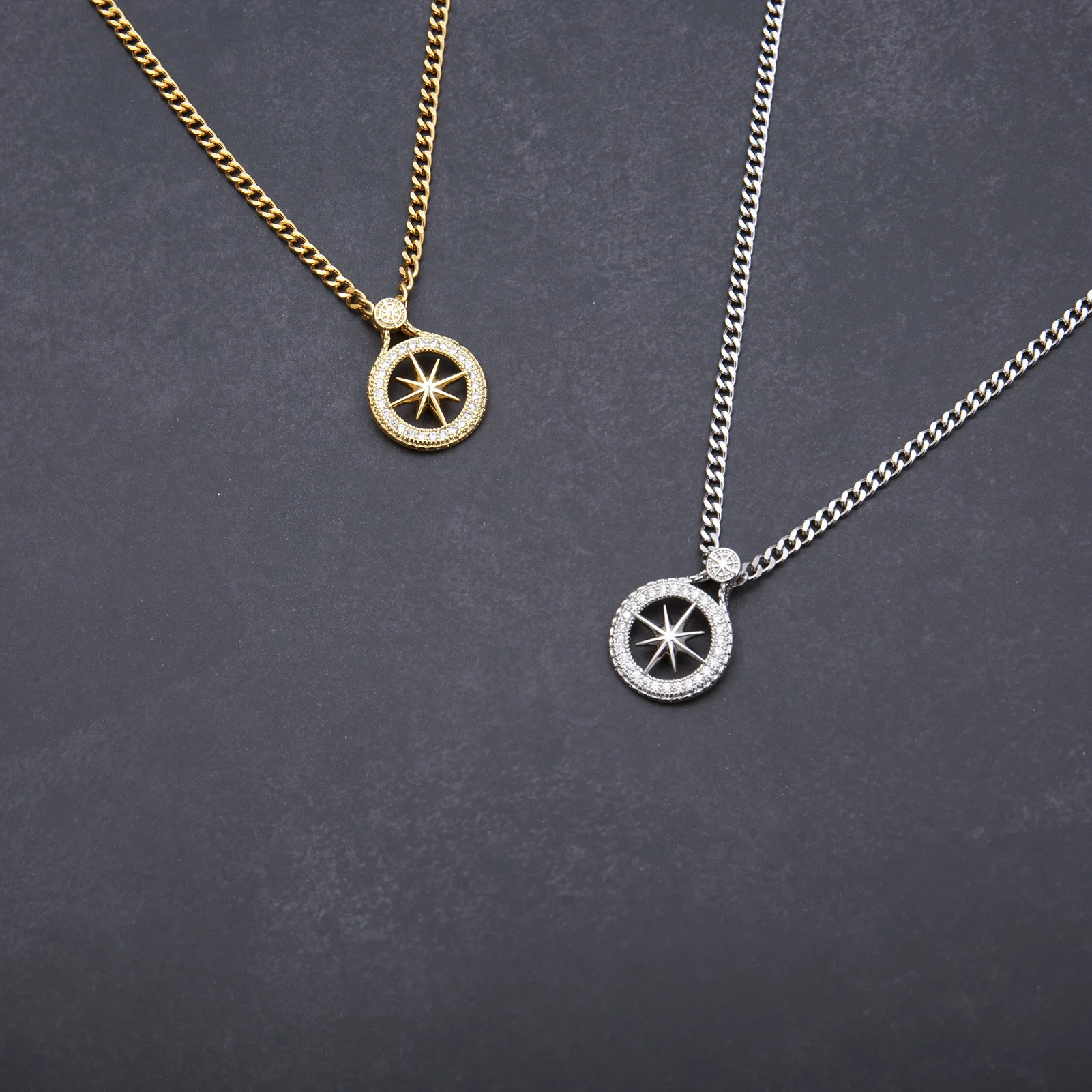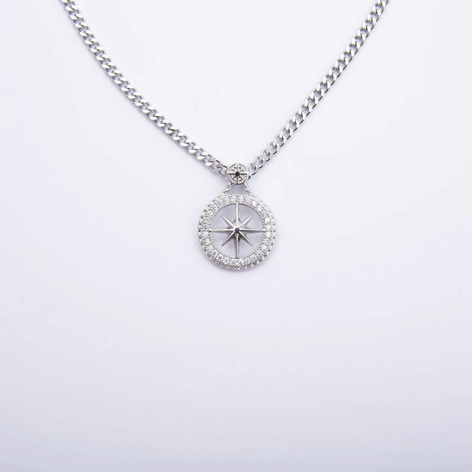 Compass necklace pendant has a simple and fashionable design, with sparkling cubic zirconia inlaid, allowing you to show your elegance and taste in any occasion.
