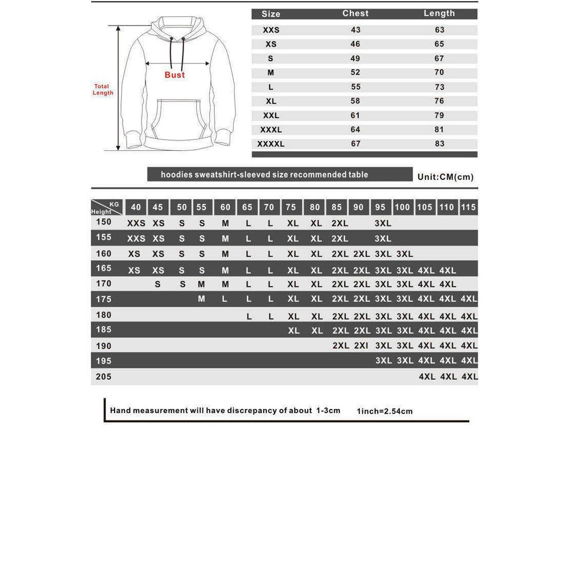 • Please see the size chart below: